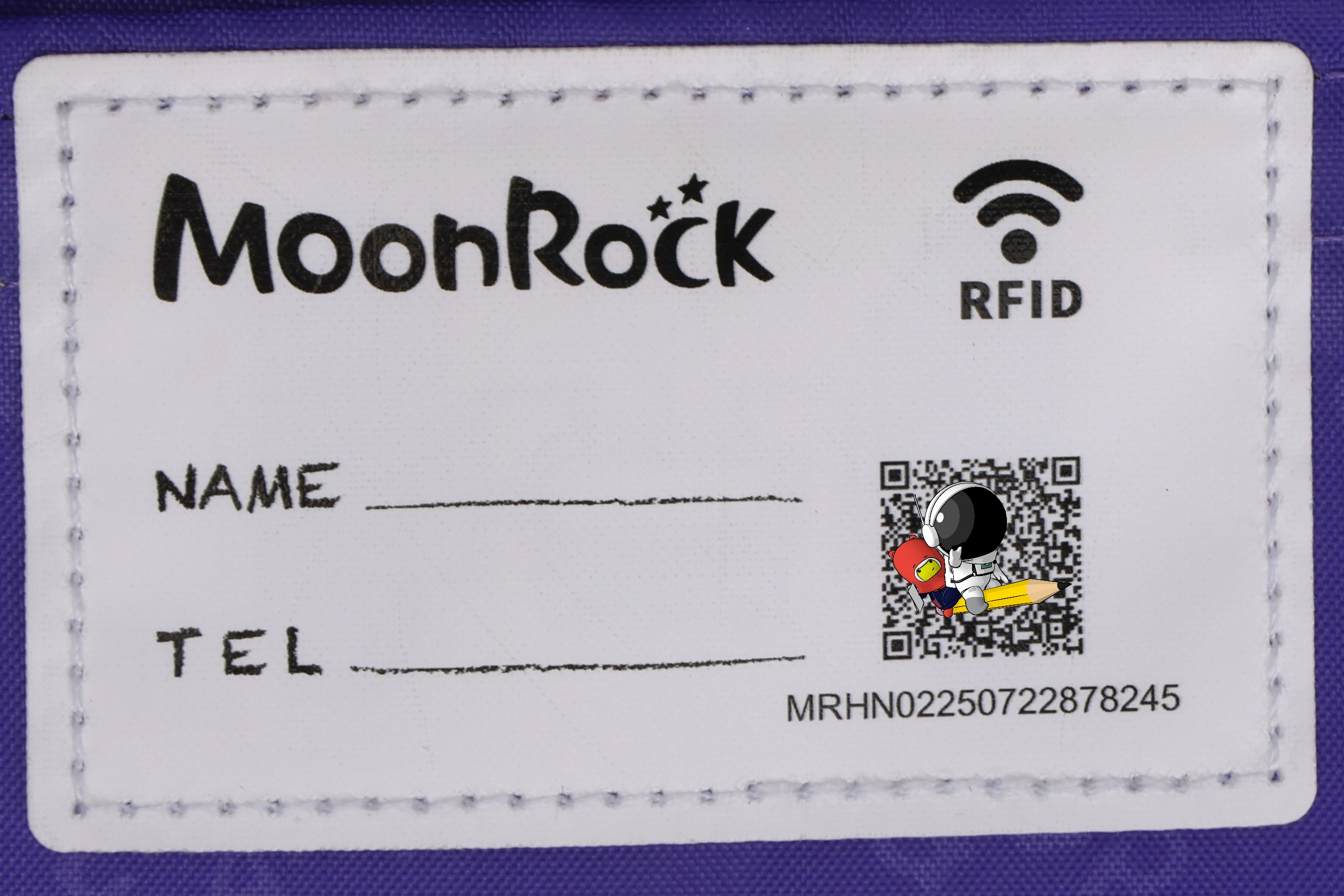 为保障您的消费权益,2020年6月起,MoonRock梦乐新批次产品,启用先进的产品防伪查询系统。其他批次产品可通过带NFC功能的手机靠近书包内袋顶部,显示防伪码串码标签,详询客服!